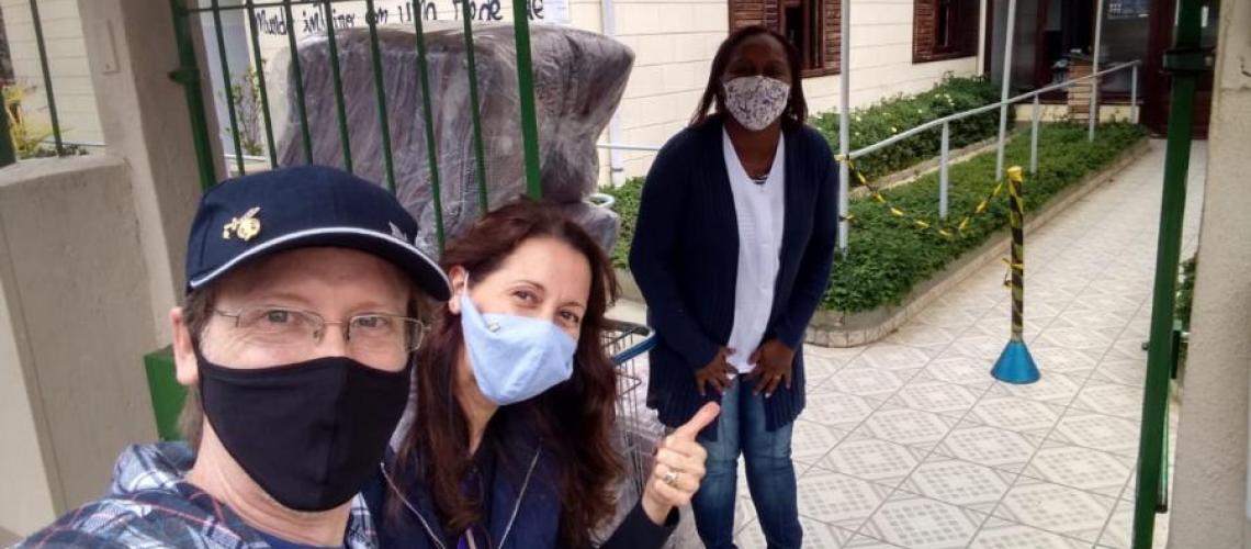 Entrega dos cobertores no Albergue Noturno Octávio de Oliveira Campos com as meninas do Bethel 26 das Filhas de Jó. 23/05/2020.